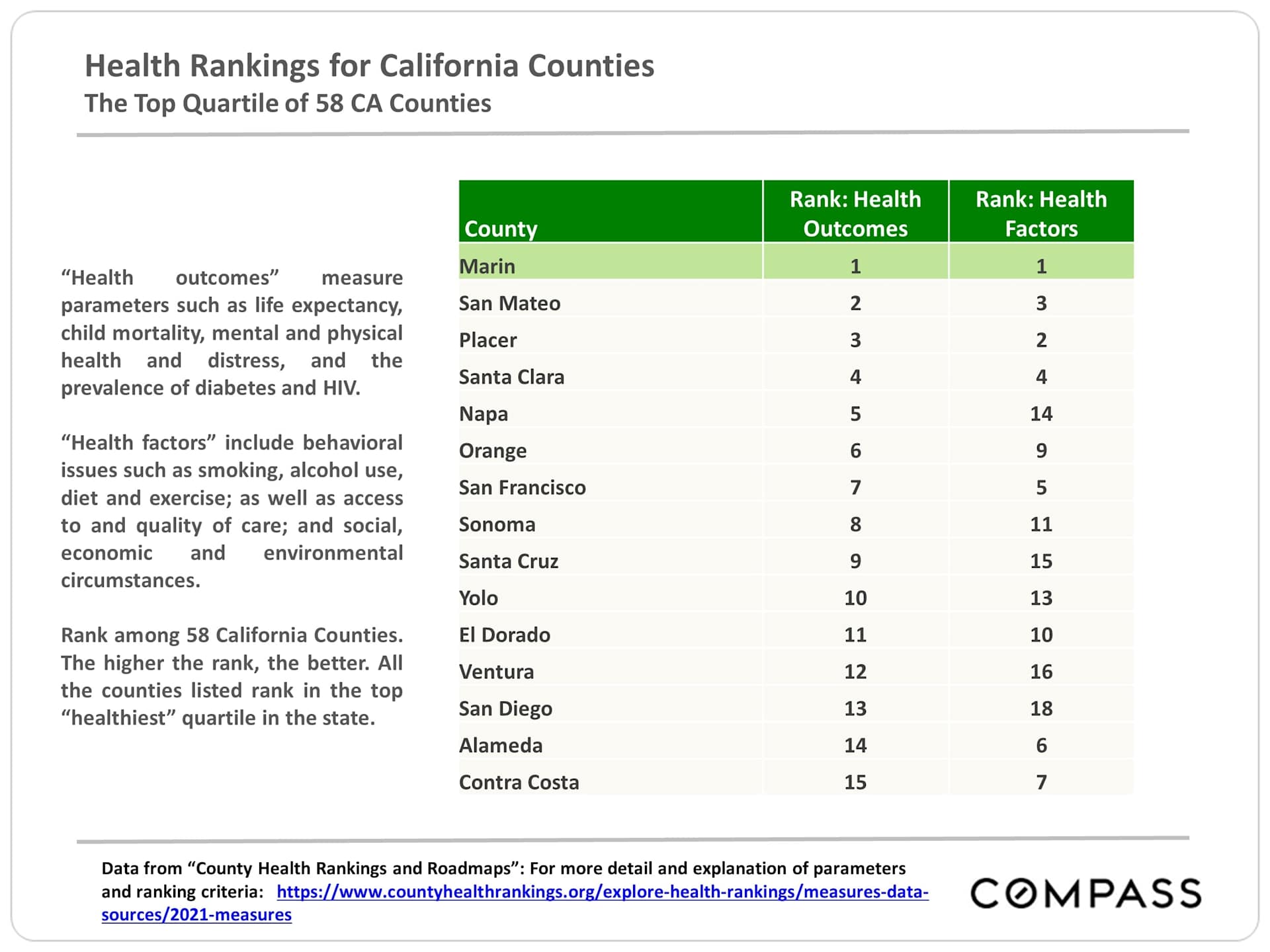 The demographics of our county offer key insight. Did you know we are the healthiest and longest living county in the entire state? Wow! And we are one of the wealthiest in the nation.