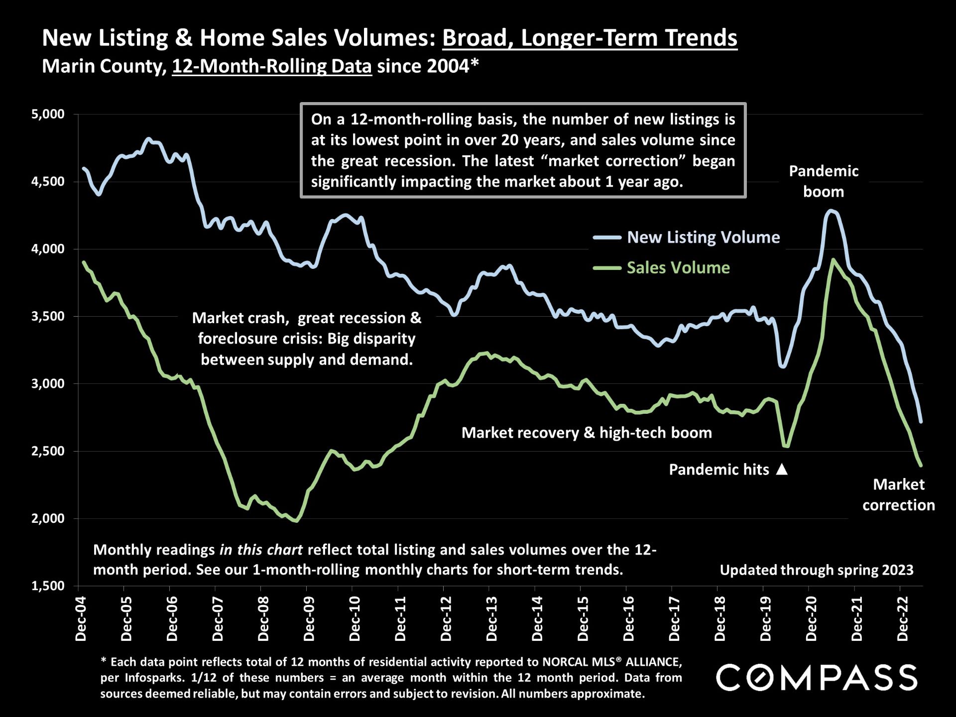 The Fed met their goal short term. Marin did have a comedown in values from the Spring 2022 highs, as well as sales volume by December descended to its lowest ebb since 2008 (as reported in the 2022 Annual Report).