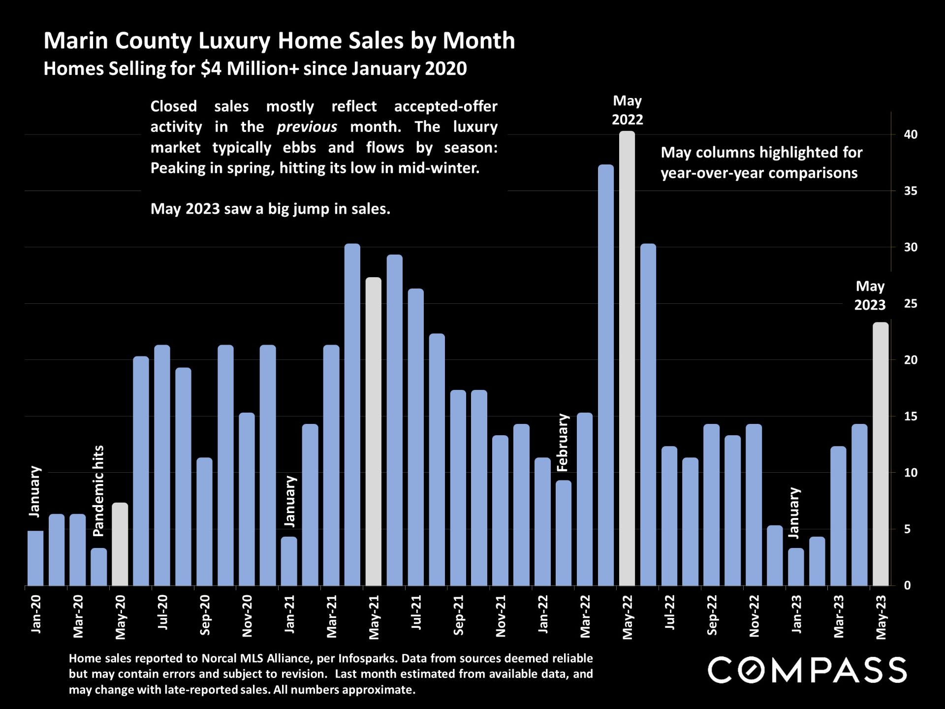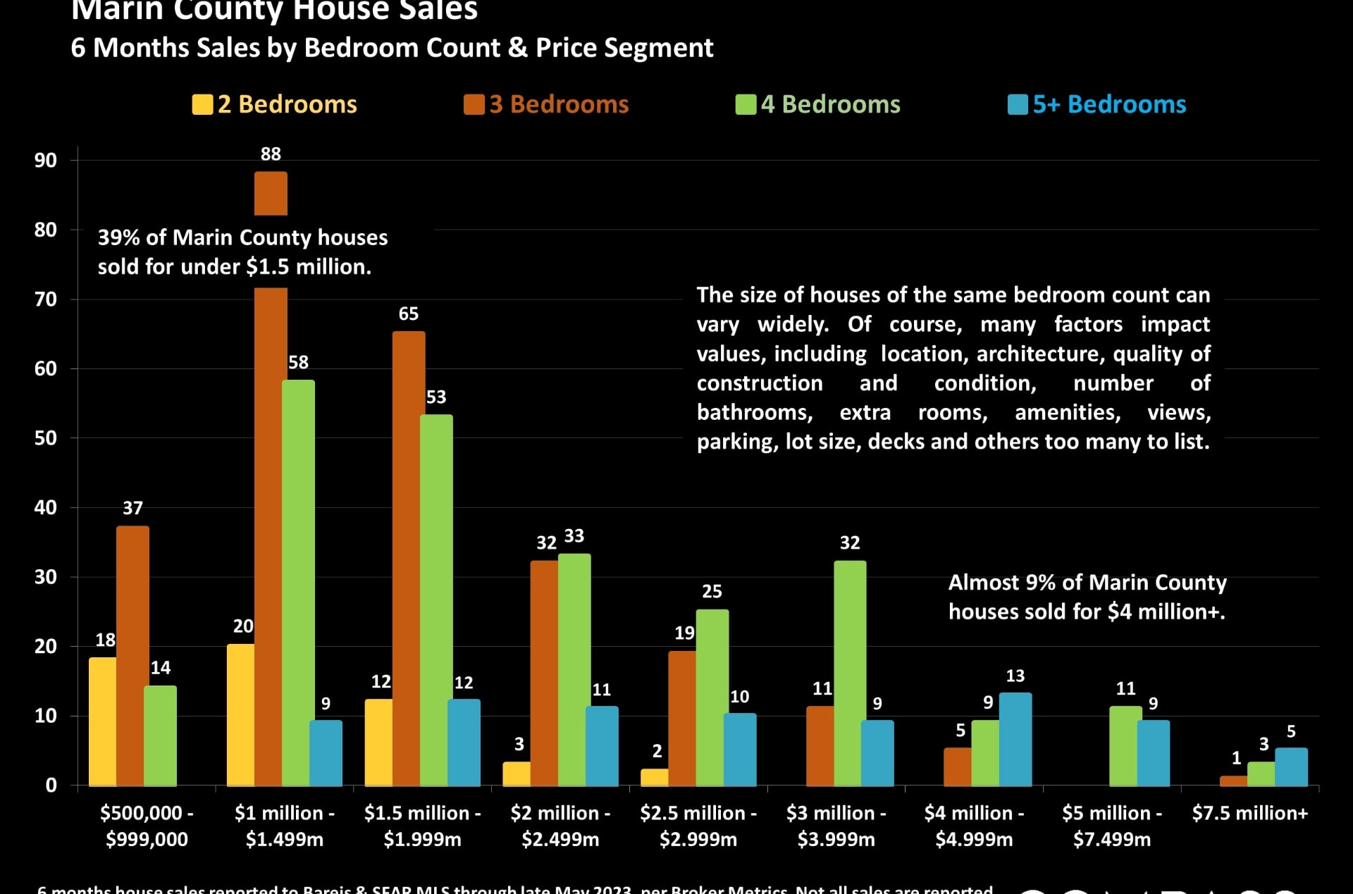 - Year to date, 9% of all homes in Marin sold at sales prices above $4.0 million. That is a wow comeback folks!